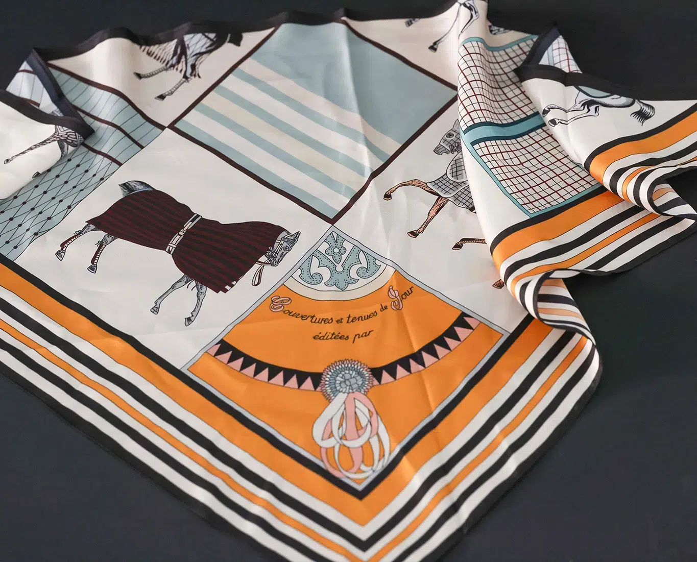 Modern designs, soft head scarf with bright designs.