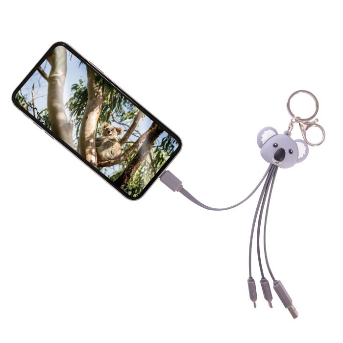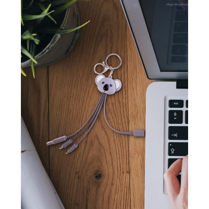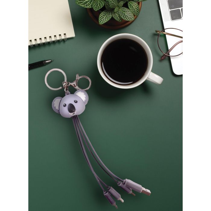 USB A & C input + micro USB, USB C & lighting output on a handy and super-cute koala keychain.