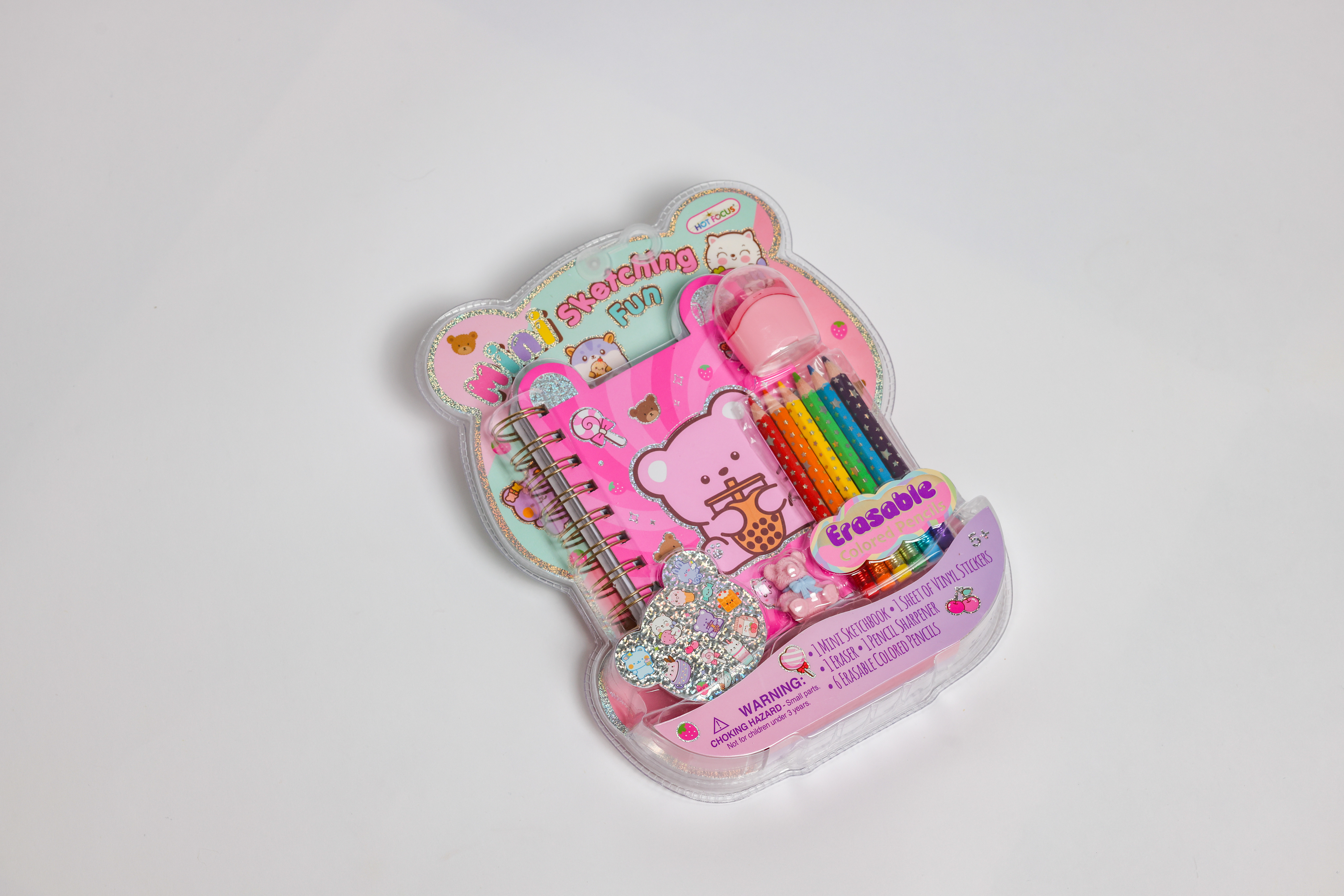 This adorable teddy bear stationary set is sure to make any little one smile. Featuring a notebook, pencils, eraser, stickers and pencil sharpener.
