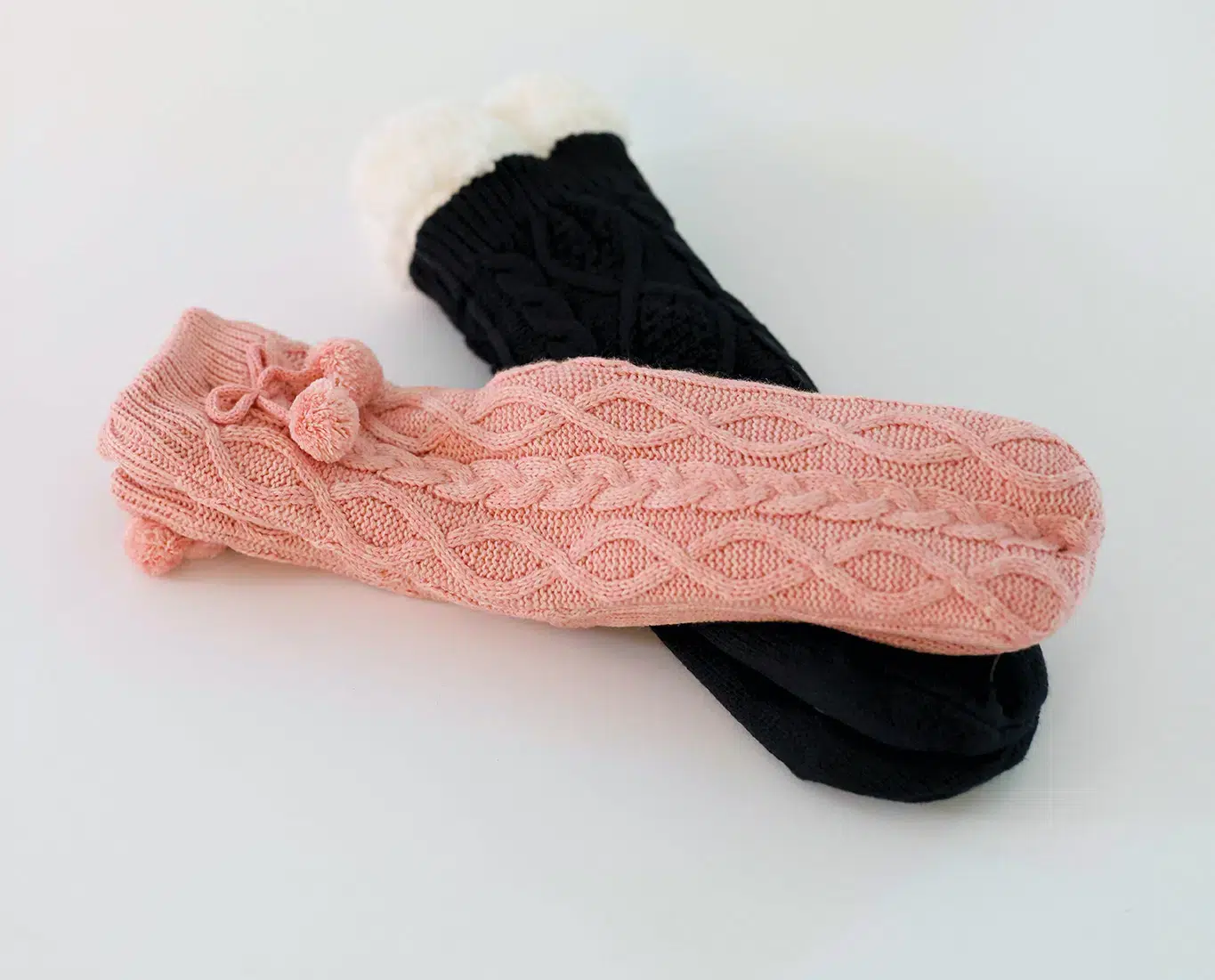 Once you put these on, you will never want to take them off. These reading socks provide comfort and warmth. Lined with faux shearling. These socks are perfect for wearing while curled up on the sofa with a book, in bed, when traveling or for hospital stays where room temperatures are often cooler. Black and pink available. Color randomly selected unless you specify in checkout.