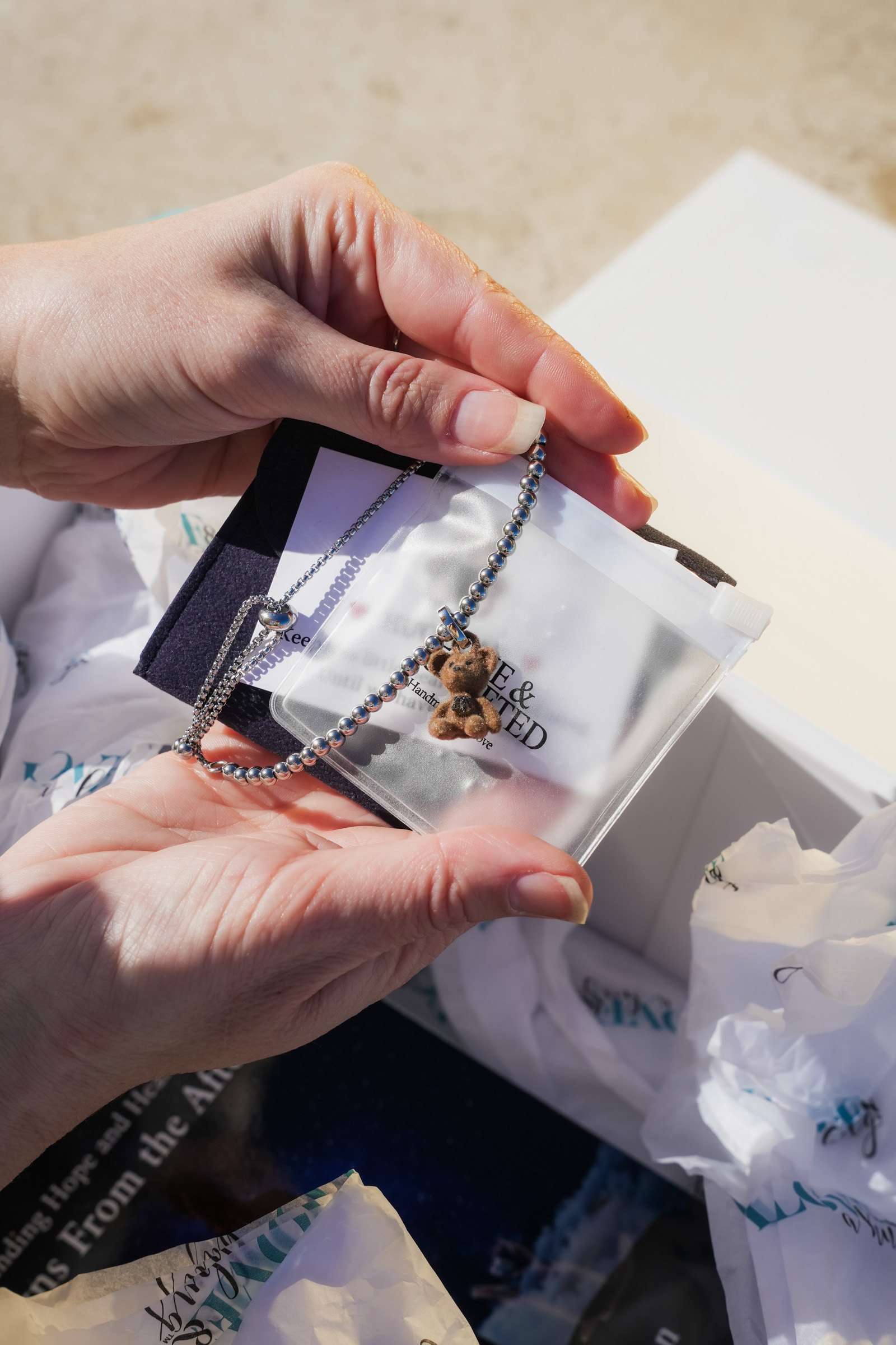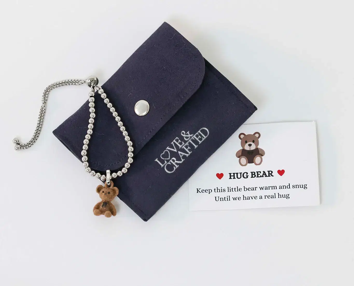 Send someone a special warm hug with this beautiful bear bracelet. Adjustable so it fits most and comes with a beautiful card and gift bag. This is a truly special keepsake to tell someone that you care.