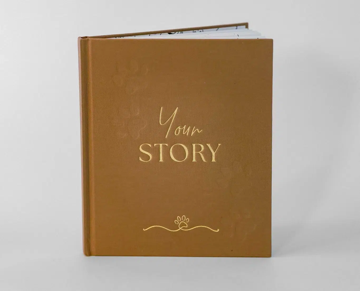 Your Story hard cover pet memory book with memo writing areas and sections to include photos of a beloved pet.